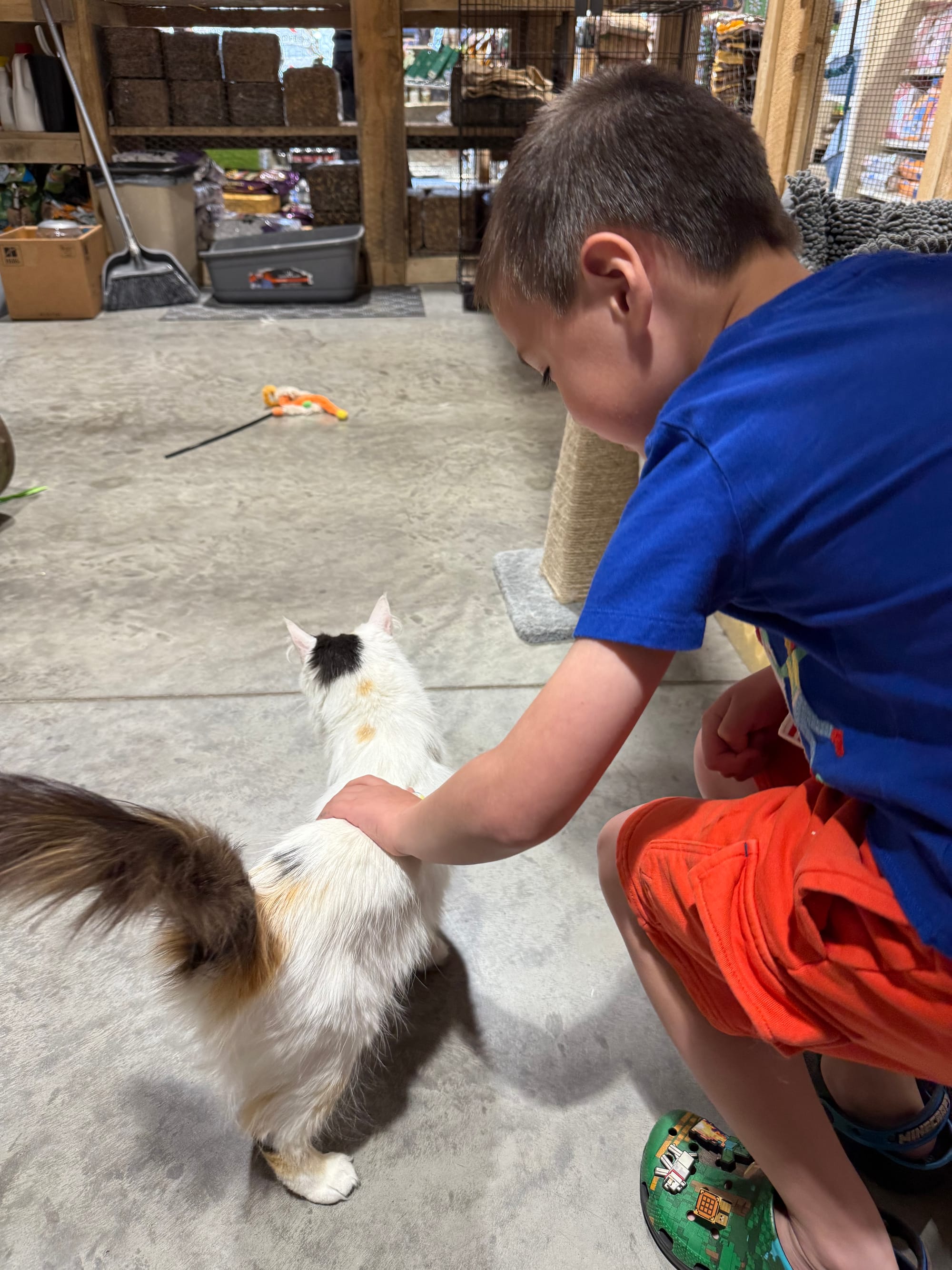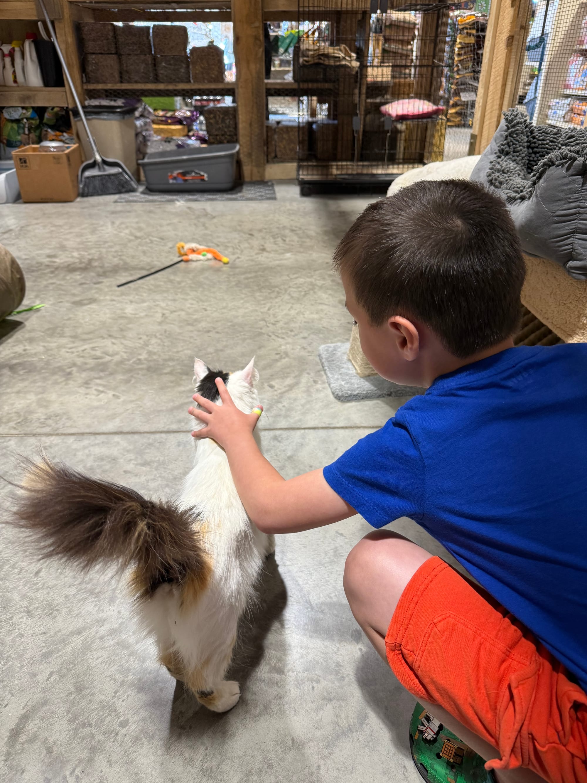 Today was Nico's first day of summer break. We were running errands around town and stopped at a local place to see the cats up for adoption. When we got inside we saw something very peculiar, there were several large plastic containers with heat lamps on them. As we approached we saw something very cute, ducklings! Nico wanted one so bad, he pressured me ask Lee if we could get one. Her response, "Oh hell no!" LOL! We also stopped and looked at the cats.