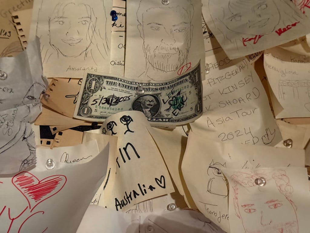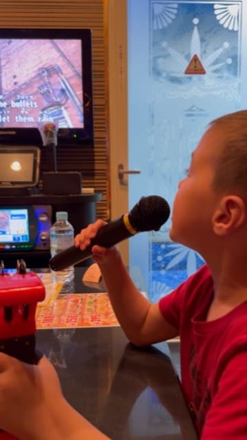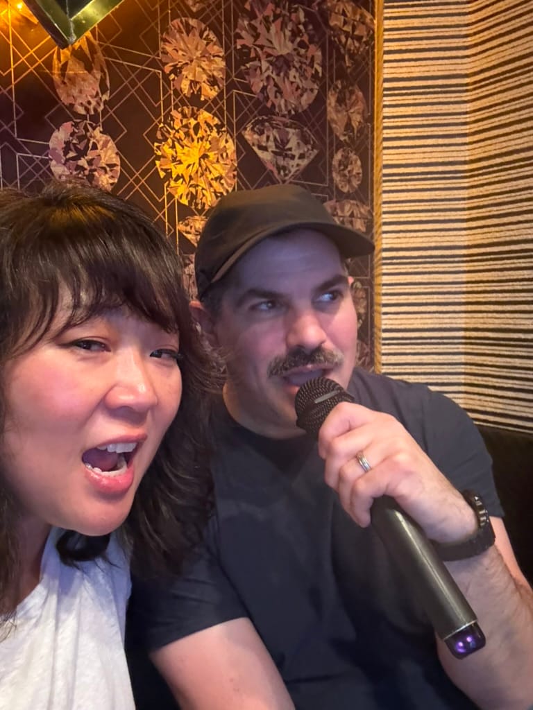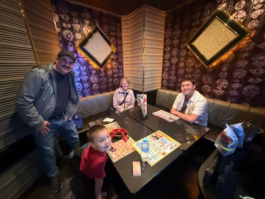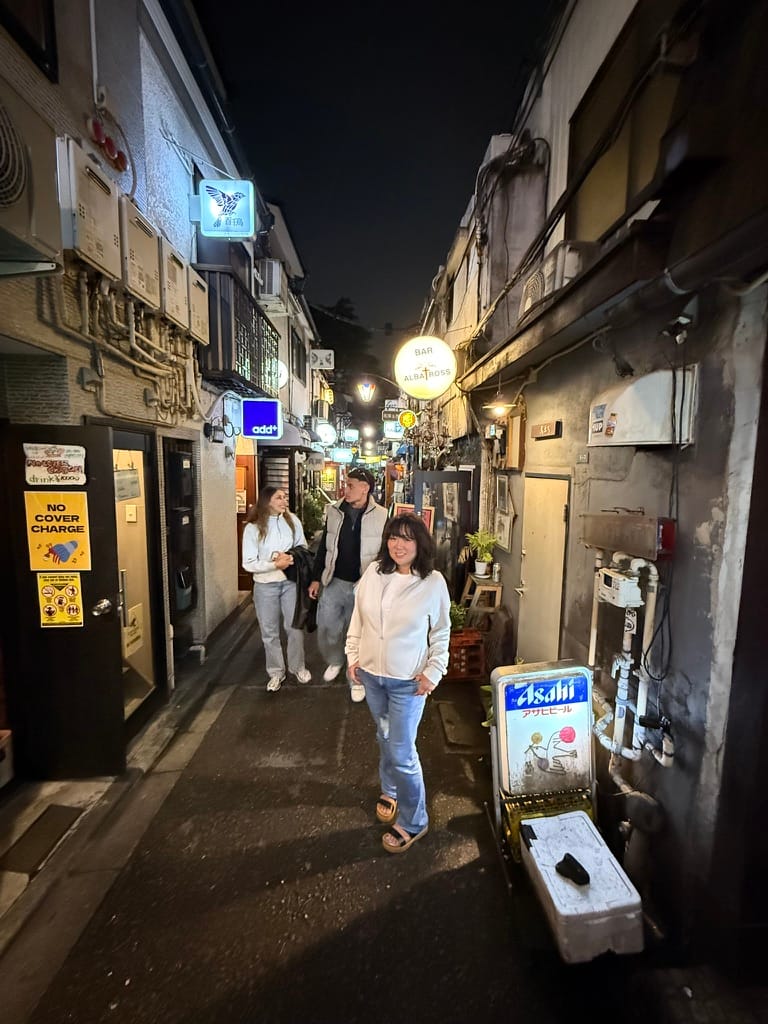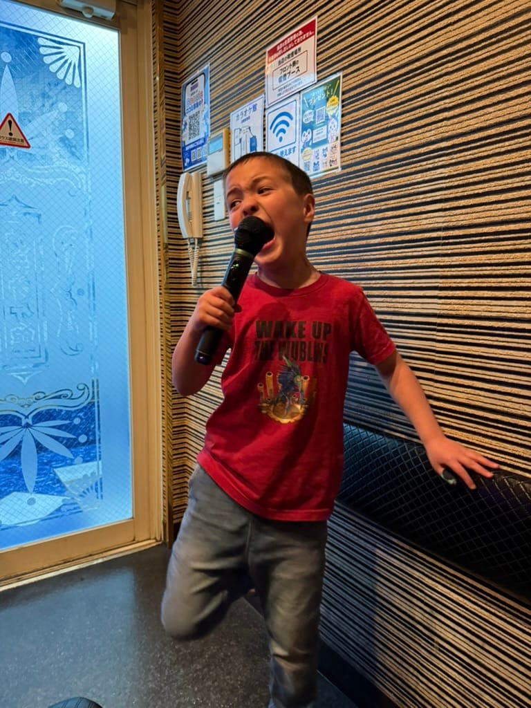 Later that evening we headed to Shinjuku for some karaoke. They have huge buildings here dedicated to just karaoke, the one we went to was a six story building with all the floors dedicated to karaoke. They do karaoke differently here, it's a private room, instead of a public thing like it is in the US. We stayed for 2 hours, enjoying drinks and food and singing our hearts out. Matthew especially enjoyed the experience. Once we finished singing we sent the boys back to the hotel with Nana in a taxi. Lee and I then headed to the Golden Gai, the area we went earlier in the trip. We did some bar hopping and met a bunch of locals and some tourists as well. We had so much fun. We visited five establishments and finally made it back to the hotel at about 2am. It was such a packed day!