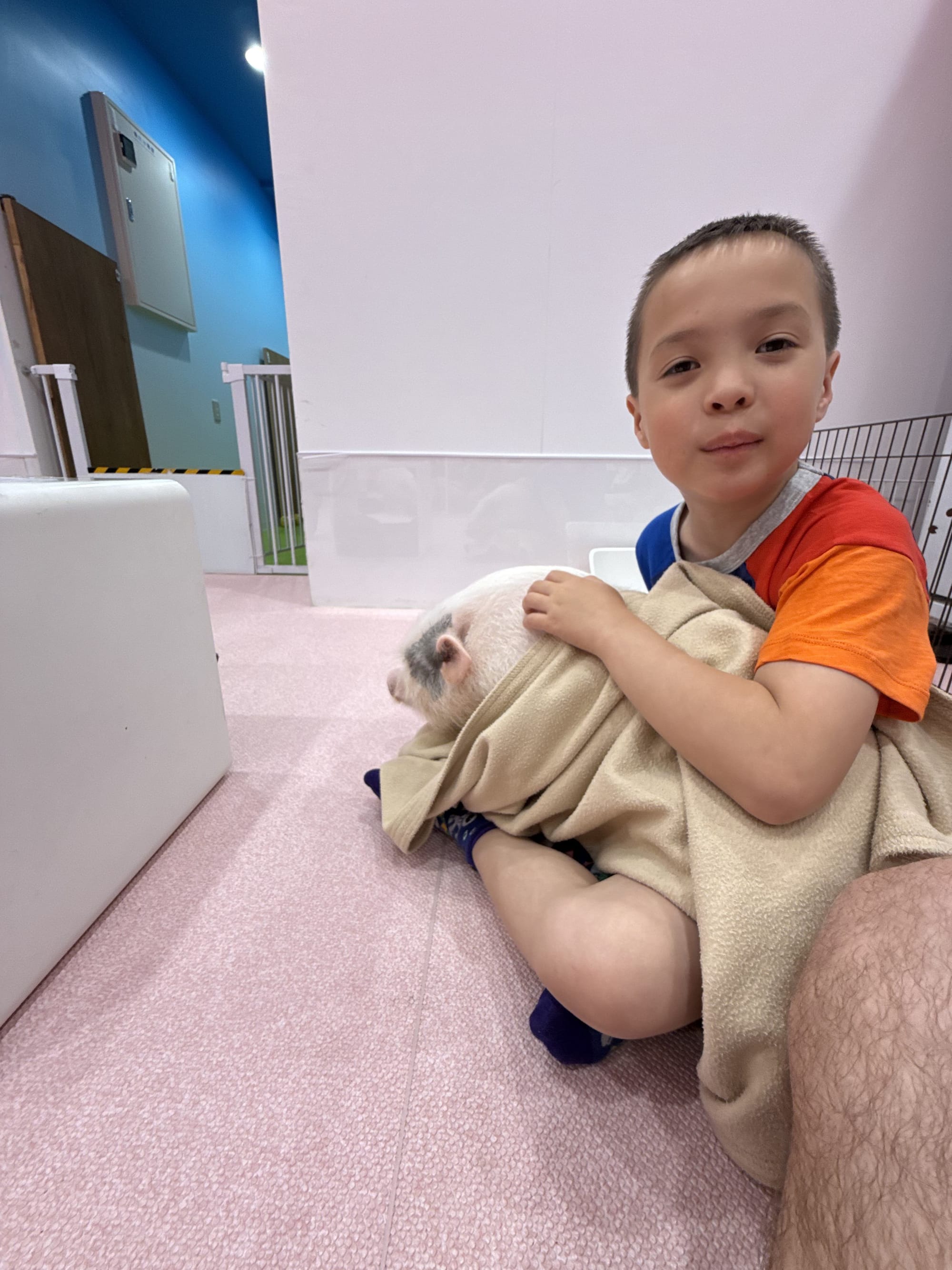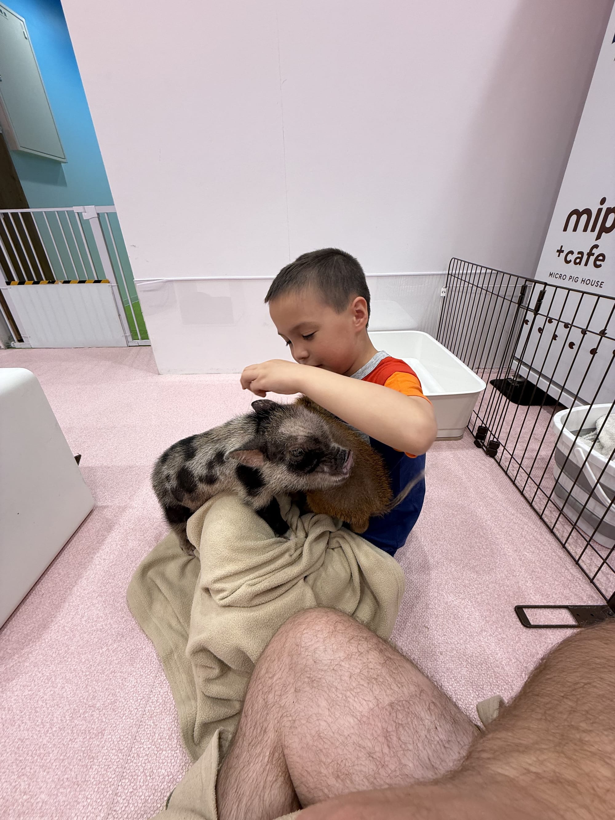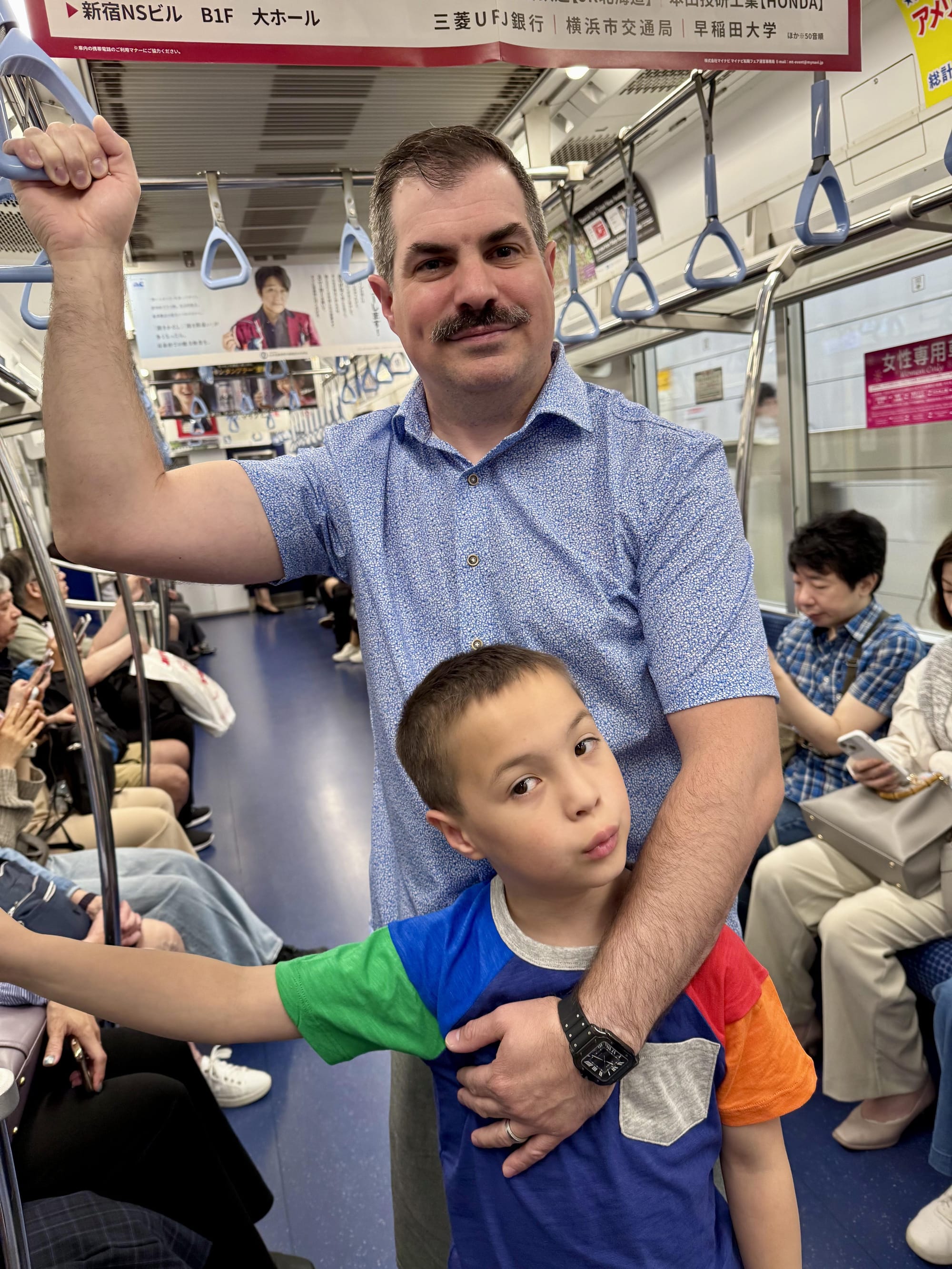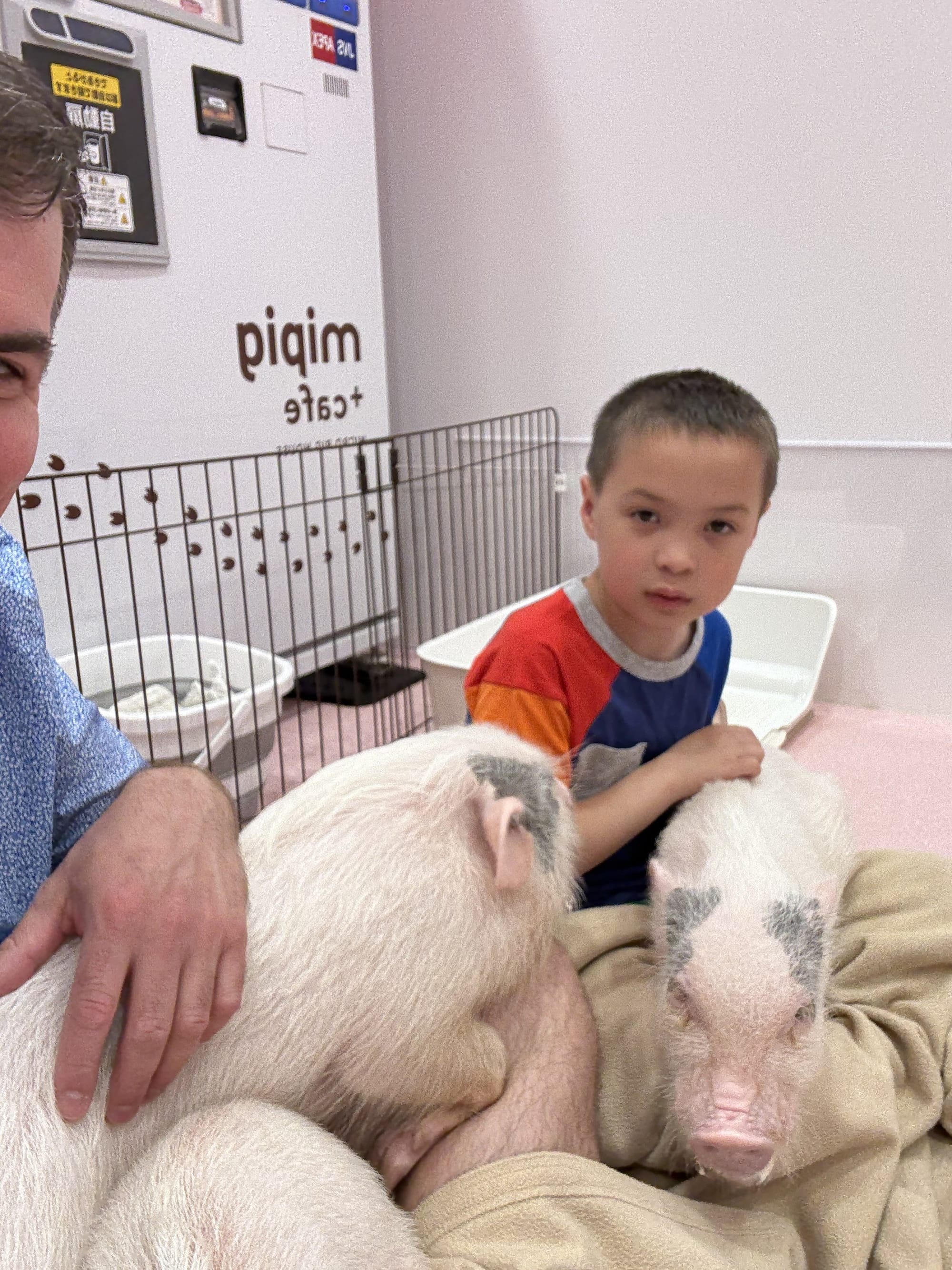 Today was Nico's favorite day so far. We started out with breakfast at the hotel where he had Japanese pancakes (they are very much like the ones you are familiar with, but they are much fluffier). Then we took the train to Shibuya, a borough of Tokyo. There we had crepes, and visited three different animal cafes. We went to an otter cafe, where Lee quickly was bitten by an otter on the foot, a pig cafe, where the pigs would fight over who got to snuggle with you, and finally a Samoyed dog cafe, where we got to pet the white fluffy dogs. After all that we met up with a ramen tasting tour. We went to three ramen restaurants and had two bowls at each restaurant. Surprisingly, Nico loved that. He couldn't stop talking about how much he loved the ramen. And finally when we had to head back, Matthew picked up the reigns as our navigator. He got us to the train stations, navigated us through a train transfer and got us safely back to our hotel. A very successful day for us!