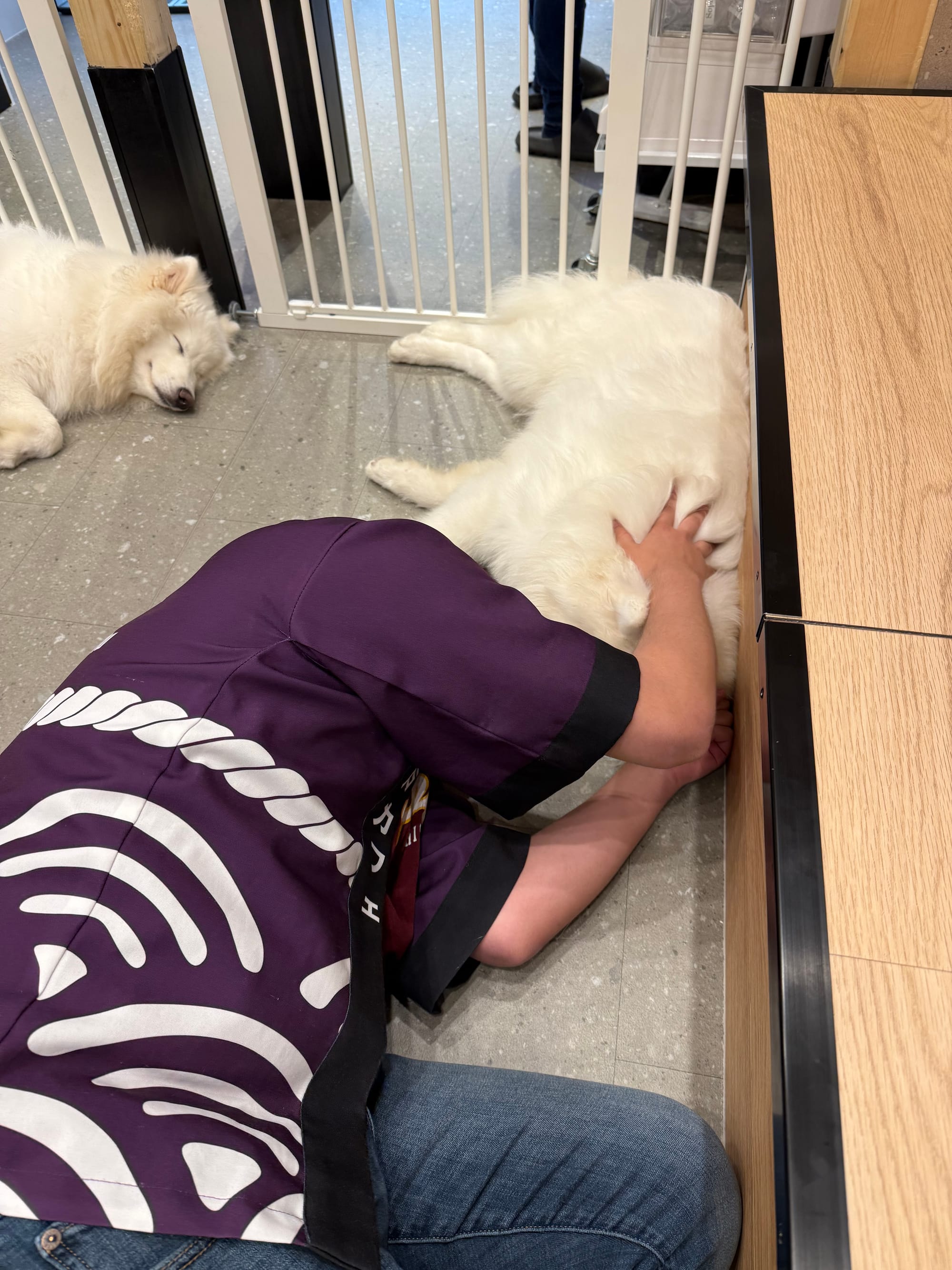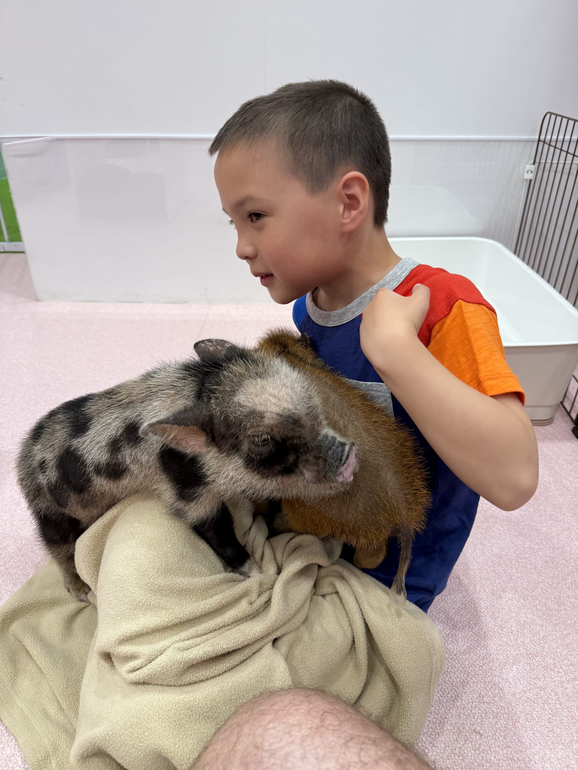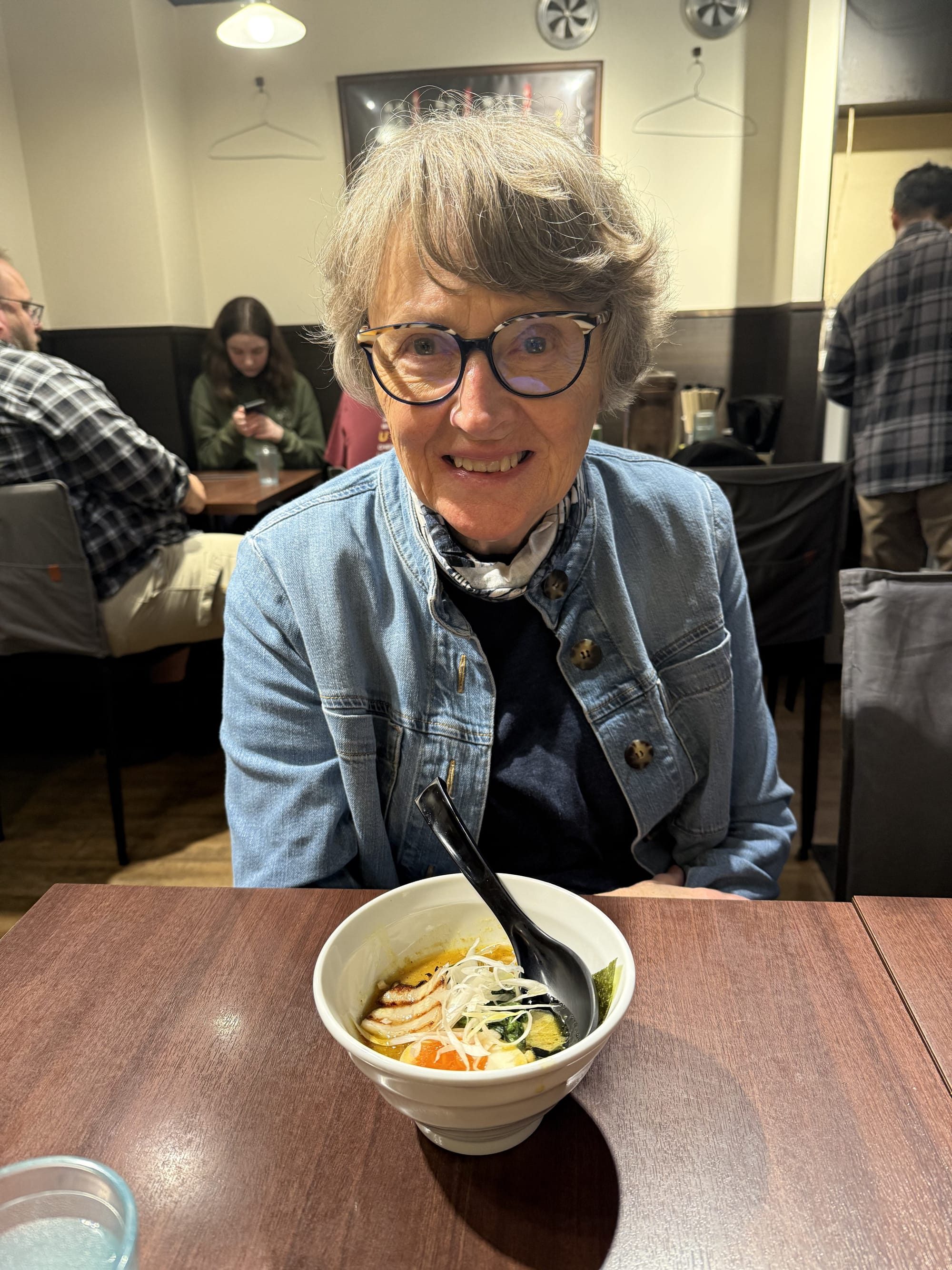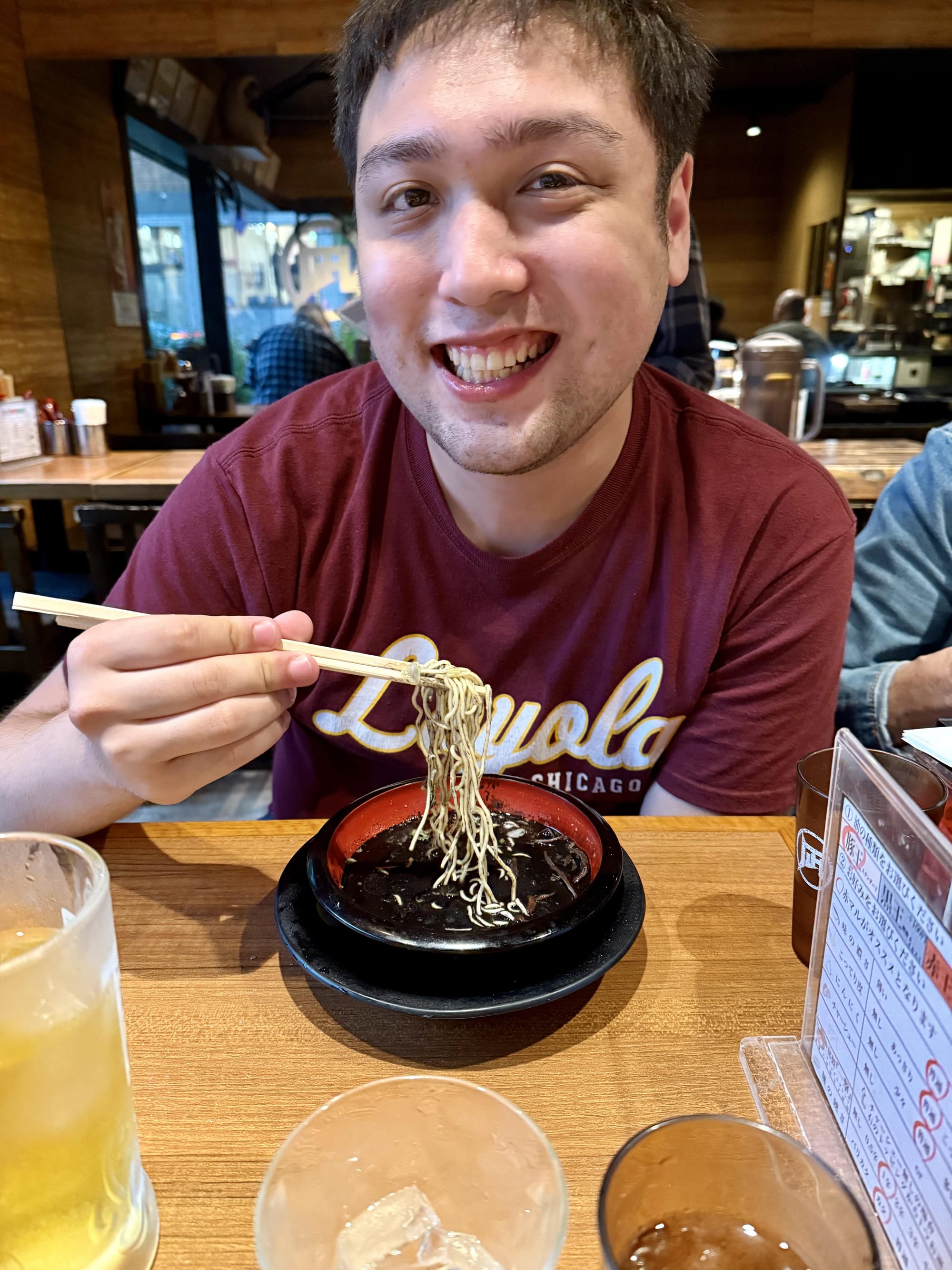 Today was Nico's favorite day so far. We started out with breakfast at the hotel where he had Japanese pancakes (they are very much like the ones you are familiar with, but they are much fluffier). Then we took the train to Shibuya, a borough of Tokyo. There we had crepes, and visited three different animal cafes. We went to an otter cafe, where Lee quickly was bitten by an otter on the foot, a pig cafe, where the pigs would fight over who got to snuggle with you, and finally a Samoyed dog cafe, where we got to pet the white fluffy dogs. After all that we met up with a ramen tasting tour. We went to three ramen restaurants and had two bowls at each restaurant. Surprisingly, Nico loved that. He couldn't stop talking about how much he loved the ramen. And finally when we had to head back, Matthew picked up the reigns as our navigator. He got us to the train stations, navigated us through a train transfer and got us safely back to our hotel. A very successful day for us!